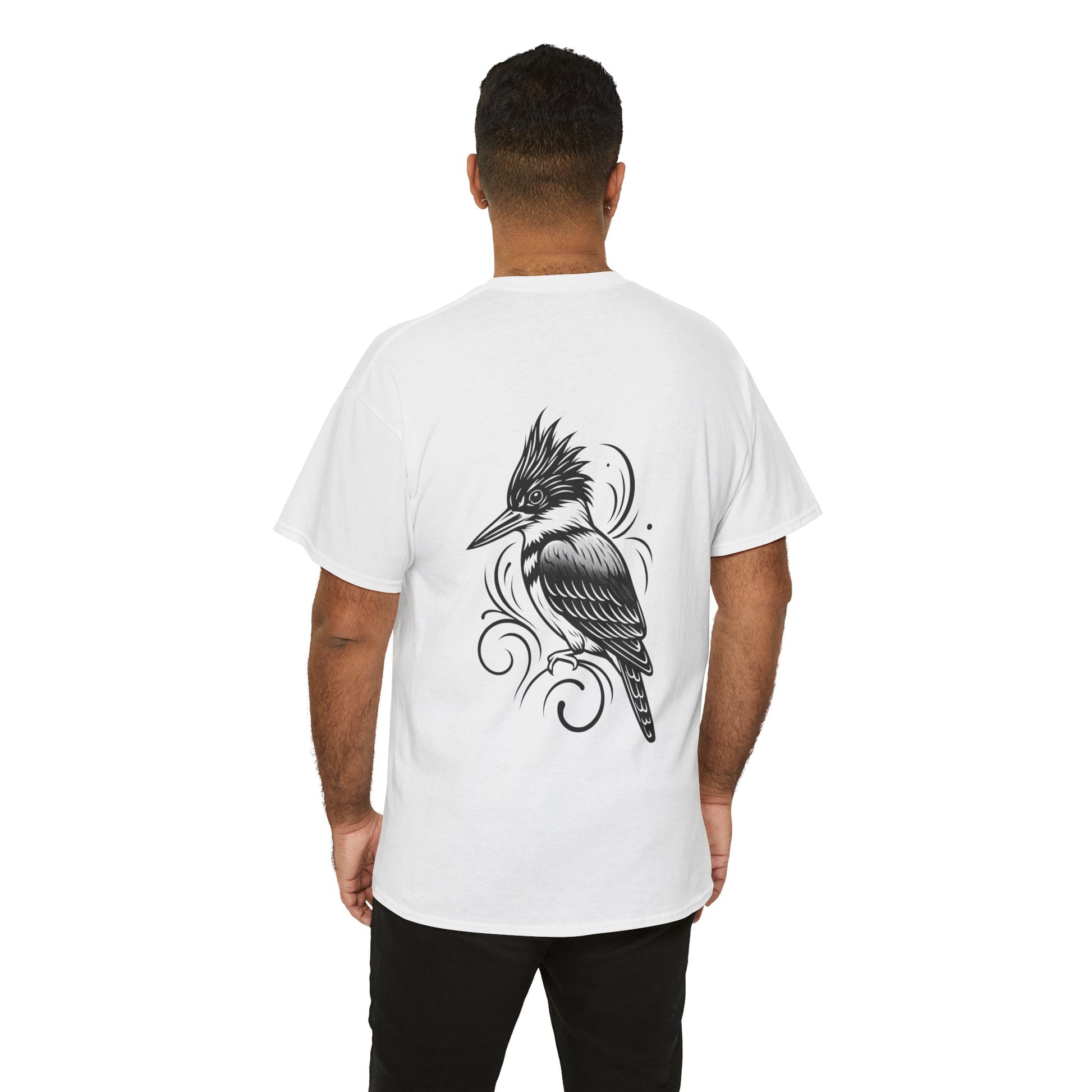 Light, quiet, and a little wild — this classic tee carries a detailed kingfisher illustration that feels like a breath of river air. The front keeps things simple with a subtle chest motif; the back reveals a larger, hand-drawn bird perched amid flowing lines. Wear it on slow mornings by the water, layered under a chore jacket on nature walks, or while sketching at a café. The cotton holds prints crisply and softens with wear, so the artwork becomes part of your everyday rhythm rather than shouting for attention. Breathable, dependable, and thoughtfully made — it settles into your rotation and speaks to anyone who notices small, nature-driven details.